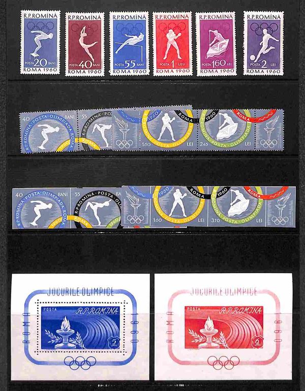 1960 - Olimpiadi Roma I + II + III (1847/1852 + 1853/1858 A + B + Block 46/47) - le tre emissioni complete - gomma integra (100+)