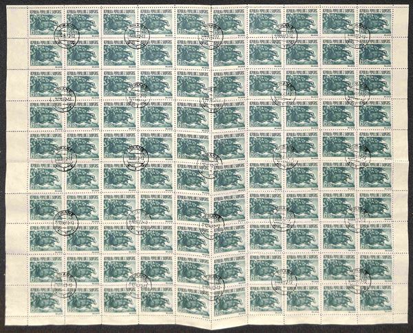 1961 - Fauna (627/629) - serie completa in fogli di 100 - usati (1100+)