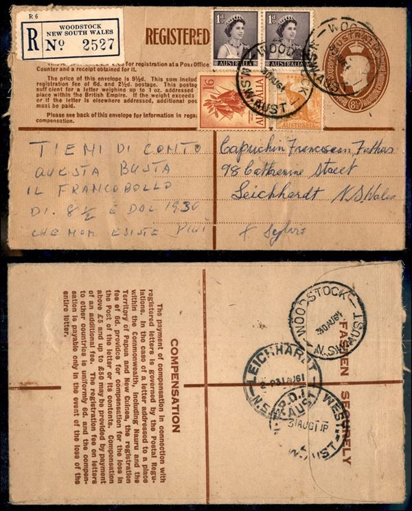 1964 - Intero postale raccomandato da Woodstock a Leichardt del 30.8.64