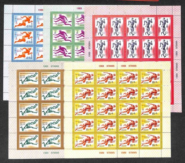 1980 - Olimpiadi Mosca XII Atletica (4921/4925) - serie completa in minfogli di 20 - gomma integra