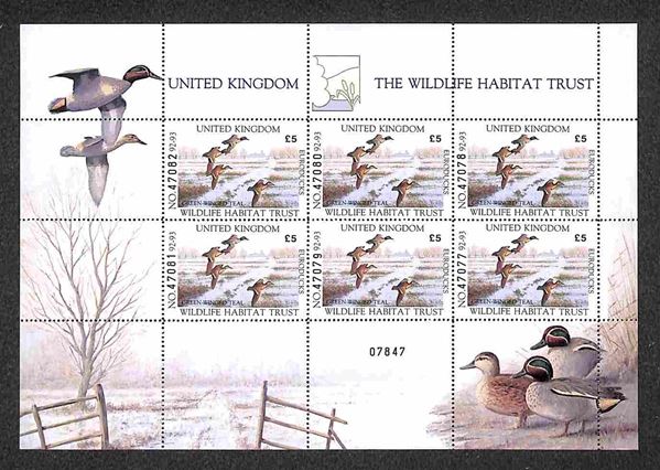 1992/93 - Minifoglio “The Wildlife Habitat Trust” Green Winged Teal - gomma integra