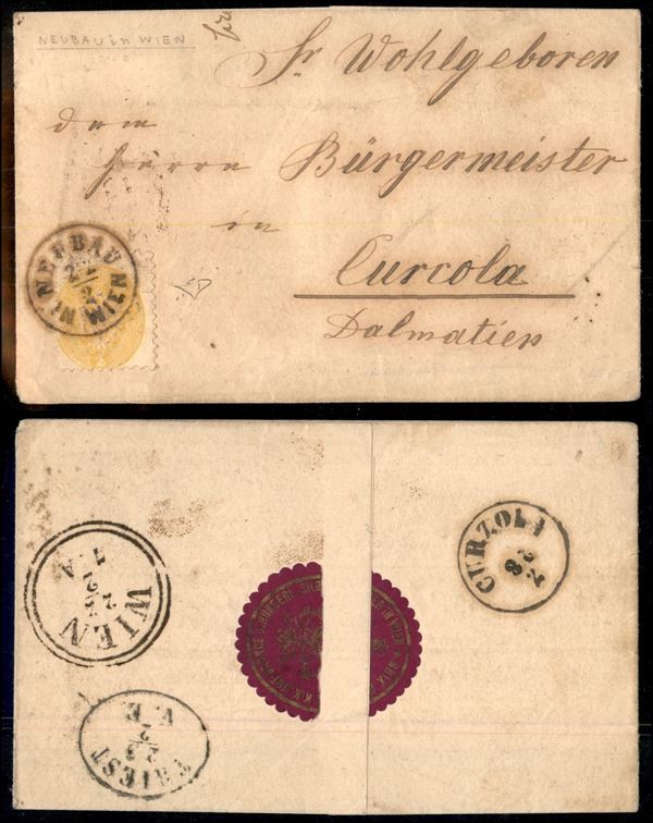 2 kreuzer (Unif. 27) isolato su involucro da Neubau per Curzola del 22.2.65 - Diena