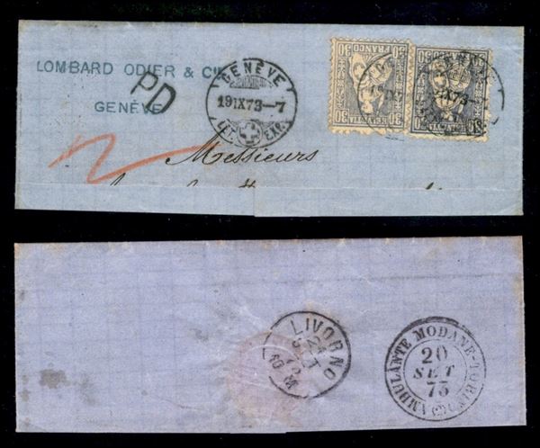 30 cent (33) - due colori diversi - testatina di lettera da Genova a Livorno del 19.9.73