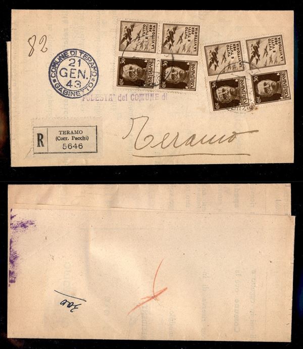 30 cent Aviazione (7-Propaganda) - due coppie su piego raccomandato per cittą - Teramo 21.1.43