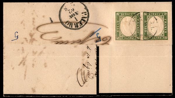 5 cent (13Dc - verde olivastro) in coppia su testatina da Palermo a Cefalù del 1.11.62 (650+)