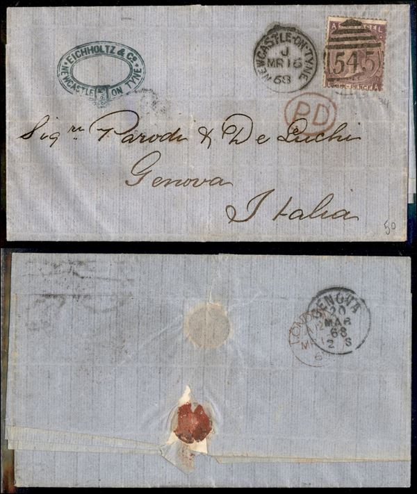 6 pence (29 - tav. 6) - lettera da Newcastle a Genova del 16.3.68