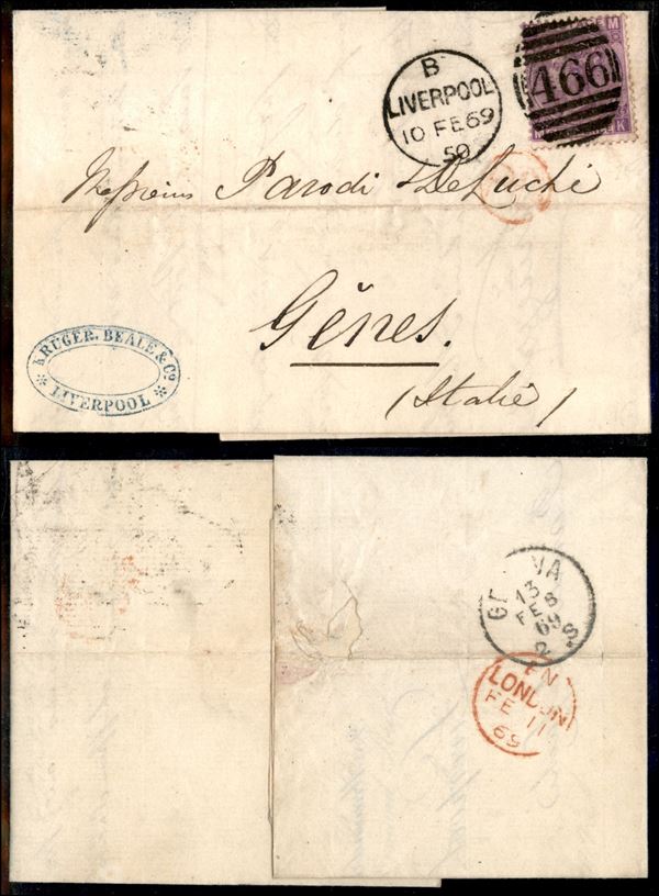 6 pence (29 - tav. 6) su lettera da Liverpool a Genova del 10.2.69