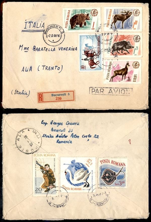 Aerogramma raccomandato da Bucarest a Ala del 7.12.66