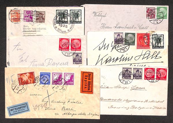 Annessione - 1938 - sei lettere per l'Italia dal 12 aprile al 18 giugno con varie affrancature miste Austria/Germania