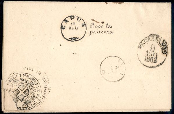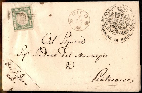 Annullato di Pico (P.ti 8) - mezzo tornese (17) isolato su circolare per Pontecorvo del 9.8.62 - appena corto a sinistra - al retro Dopo la Partenza + Capua + S. Gennaro