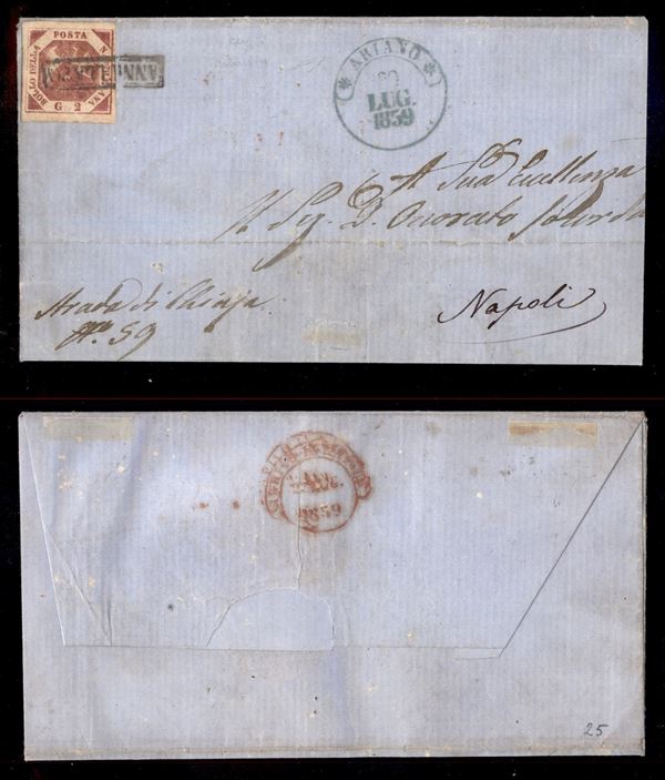 Ariano (azzurro - P.ti 6) - 2 grana (7) su lettera per Napoli del 20.7.59