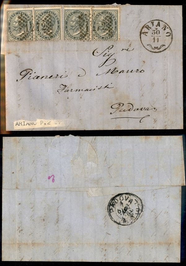 Ariano (P.ti 2) - due coppie del 5 cent (L16 - Regno) su lettera per Padova del 30.11.68