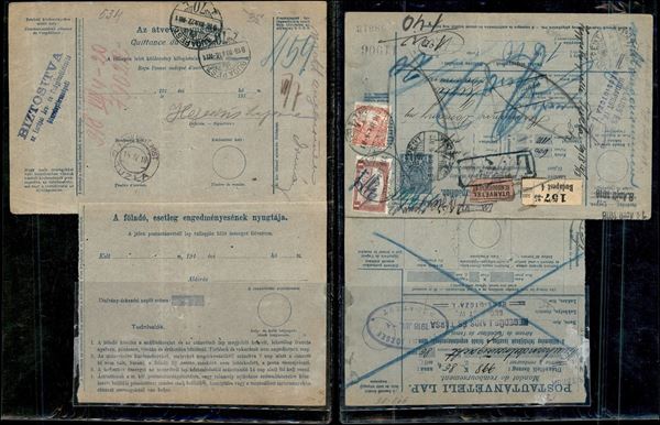 Austria Ungheria - Bollettino Pacchi doppio da Budapest a Huzla del 6.4.18