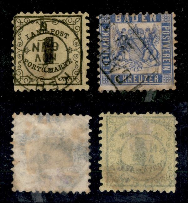 Baden - 1862/1863 - 6 kreuzer (19) usato + 1 kreuzer Segnatasse (1x - giallo chiaro) usaato a Kehl - difetti - da esaminare
