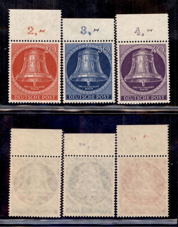 Berlino - 1953 - Campana (103/105) - 3 valori bordo foglio - gomma integra (80+)