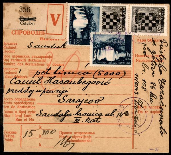 Bollettino Pacchi da Gacko a Sarajevo del 11.2.43