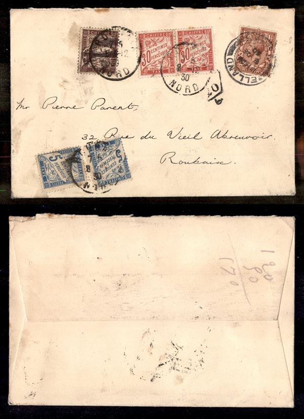 Busta da Elland a Roubaisc del 8.12.30 – tassata in arrivo (189GB+28+33+37FR)