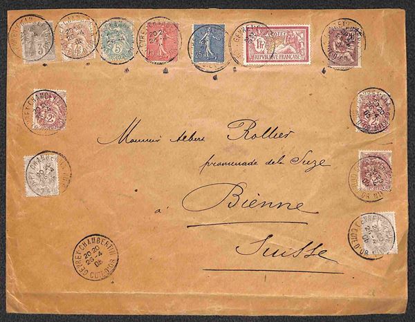 Busta da Gevrey per la Svizzera del 26.4.05 con affrancatura multipla multicolore