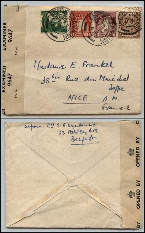 Bustina da Lettir Ceanain a nizza del 21.7.45 (Unif. 72/73 + 75 + 93)