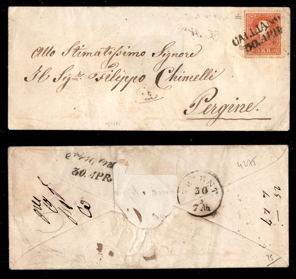 Calliano (P.ti 3) - 5 kreuzer (8) su bustina per Pergine