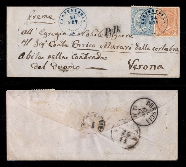 Carpenedolo (azzurro - P.ti 13) - De La Rue (L17 + L18 - Regno) - bustina per Verona del 24.11.64 - cert. AG (11.000)