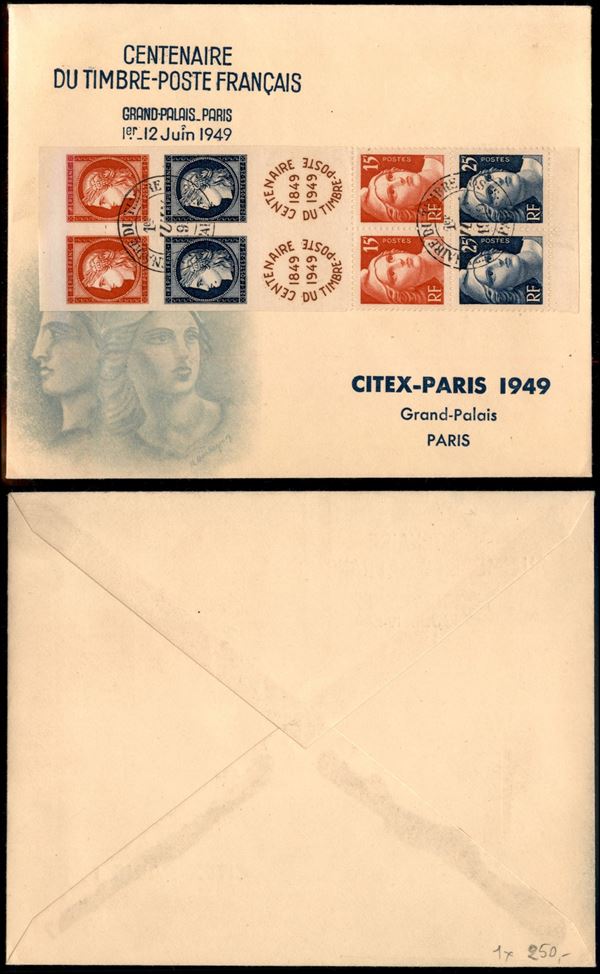 Centenario del Francobollo - Marianna (840/843) - coppia di striscie usata su busta con annullo speciale del 1.6.49