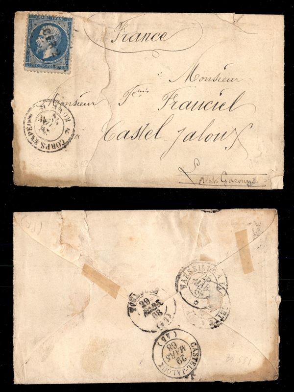 CER 2 + Corps d’Exped. (P.ti 12) - 20 cent (22 - Francia) su bustina (con strappo riparato) da Roma per la Francia del 26.3.68 (5.000)