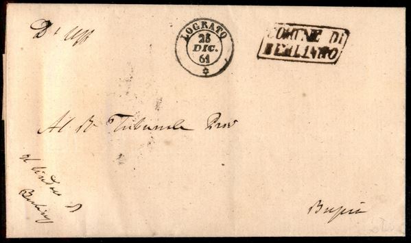 Comune di Berlingo (bruno rossastro) + Lograto - piego in franchigia per Brescia del 25.12.61