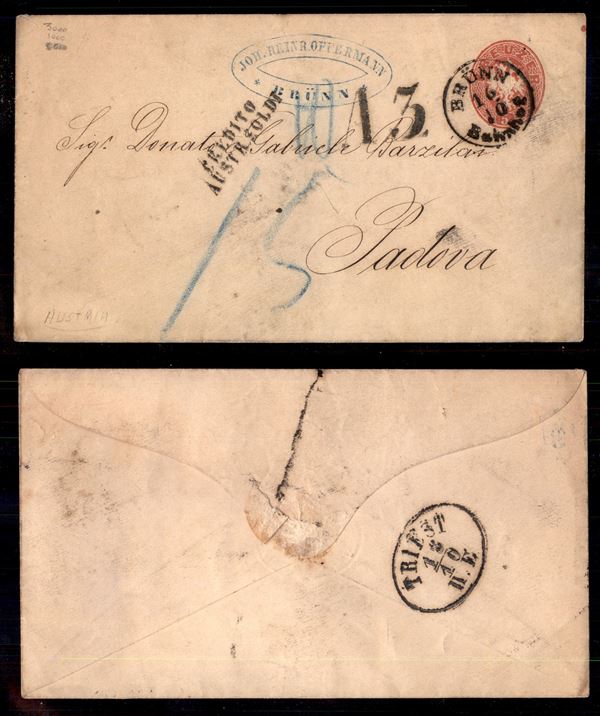 Credito Austr. Soldi + A3 - busta postale da 5 kreuzer de Brunn a Padova - tassata