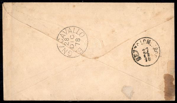 Denno in Sud Tirol (azzurro - P.ti 6) su busta postale da 10 kreuzer per Bagnacavallo del 27.12.78