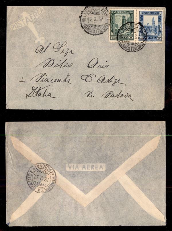 Duca Abruzzi (P.ti 10) - Pittorica (218 + 223) su aerogramma per Padova del 12.2.37