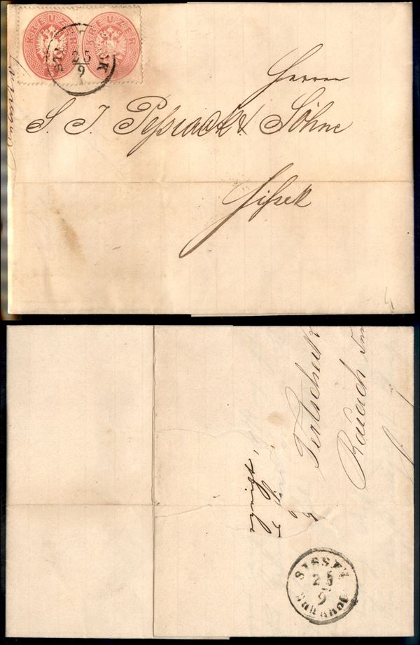 Due 5 kreuzer (26) di colori diversi su lettera da Stertschek a Sissek del 25.9.63