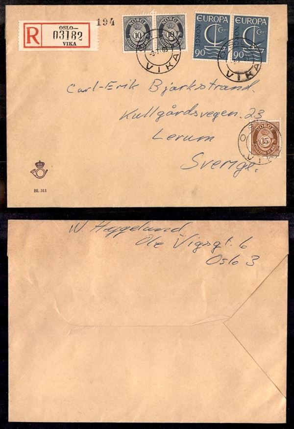 Europa Cept – Raccomandata da Oslo a Lerum del 3.7.68 (Unif. 436/437+502)