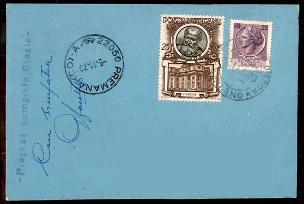 Facchetti Giacinto (calciatore) - autografo (F - C) su cartolina postale del 1970