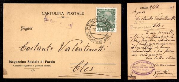 Faedo (Tir.) (P.ti 9) male impresso su cartolina per Cles del 26.4.17