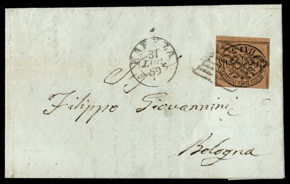 Faenza (pti 4) - 3 Bai (4 - Pontificio) - lettera per Bologna del 31.7.59 - piega orizzontale al centro (6000)