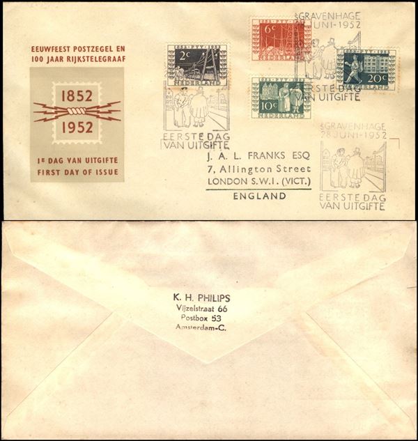 FDC 100 anni del Servizio postale - con la serie (593/596) - Gravenhage 28.6.52