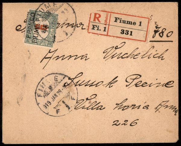 Franco 45 su 6 filler (29cbb) con sbarretta a cavallo - raccomandata per Susak del 28.1.19