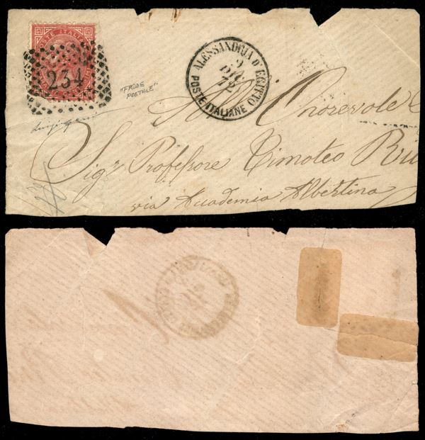 Frode Postale - 40 cent (20 Regno) - difettoso in angolo - frammento di busta da Alessandria del 9.12.72