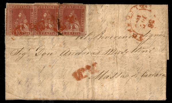 Governo Provvisorio - PD (rosso) di Livorno - tre 1 crazia (12) su lettera per Massa del 30.12.59