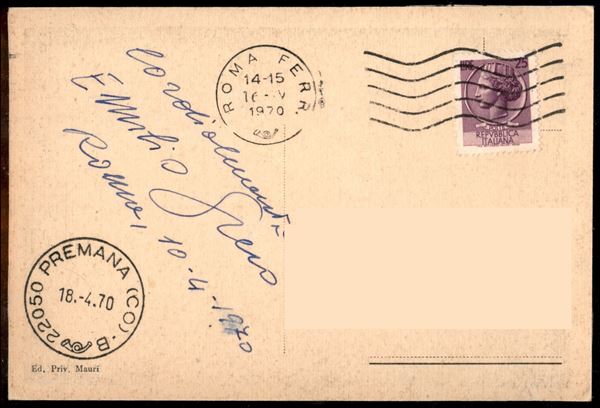 Greco Emilio (scultore) - autografo (F - C) su cartolina del 1970