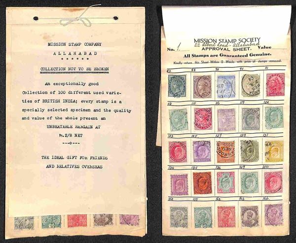 India Britannica - Collezioncina di 100 diversi usati predisposta in folder da Mission Stamp Company/Allahabad
