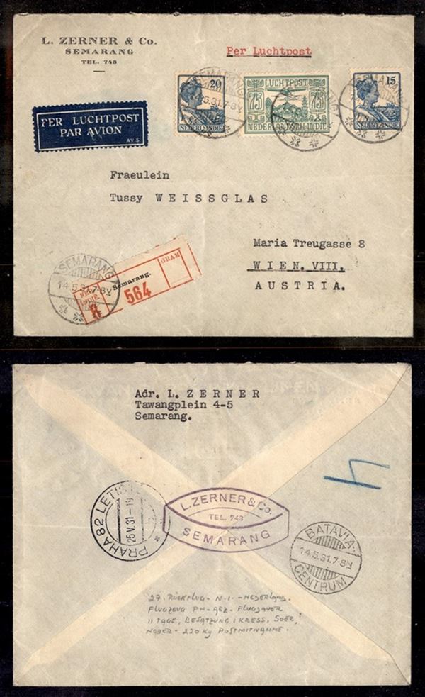 INDIE OLANDESI - 4.5.31 – Aerogramma del Volo Semarang Vienna