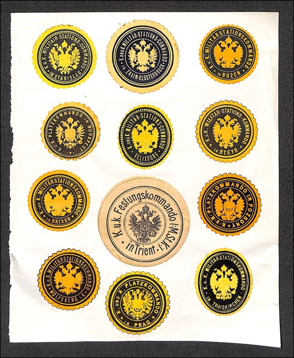 K.K. Feldpost - 1914/1918 - 12 chiudilettera diversi su foglio d'album