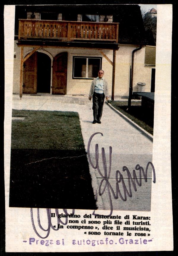 Karas Anton (musicista) - autografo su ritaglio di giornale applicato su cartoncino del 1970