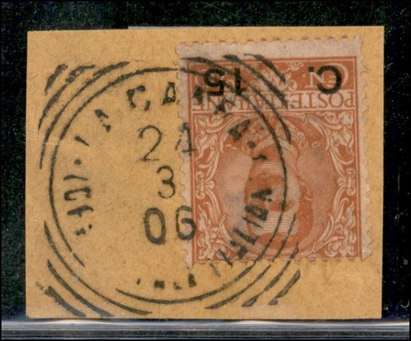 La Canea (Uf.o Postale Italiano) tondo riquadrato 24.3.06 (P.ti 8 Gaggero) su 15 cent su 20 (79 - Regno) su frammento