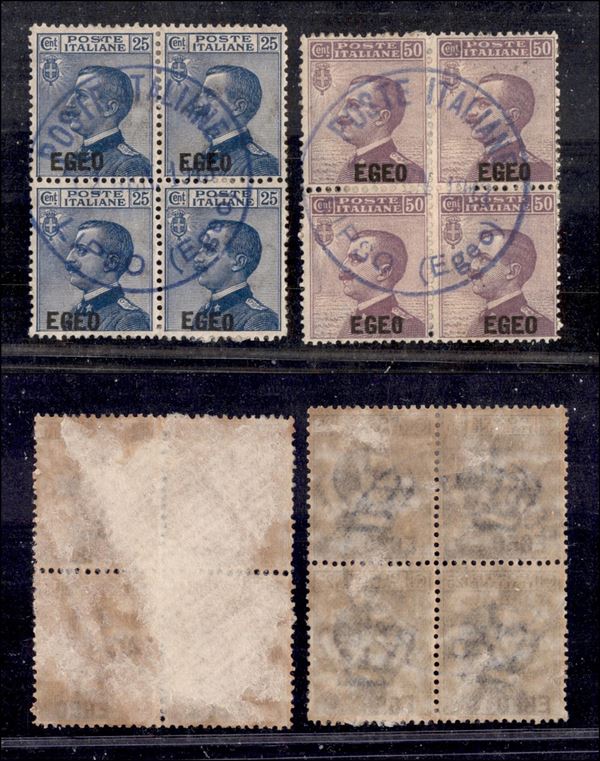 Lipso (Egeo) /Poste Italiane - Soprastampati (1/2 - Egeo) - quartine usate