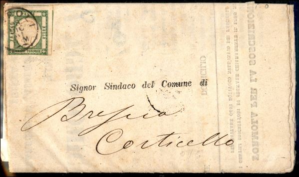 Mezzo tornese verde smeraldo (17d) isolato su circolare da Napoli a Brescia del 28.12.61 - appena corto in basso - Oliva (3.500)