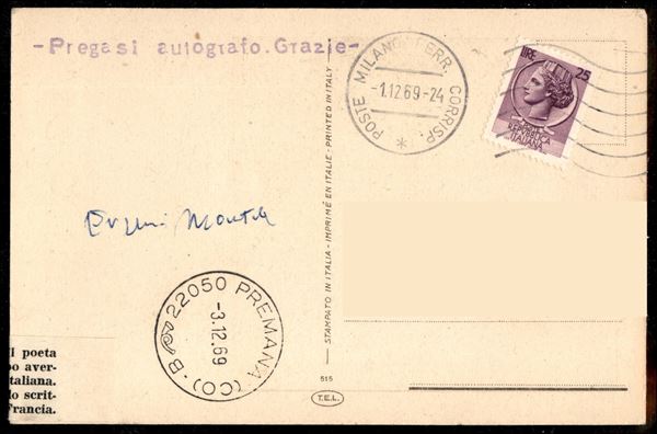 Montale Eugenio (poeta) - autografo (F - 1) su cartolina del 1969