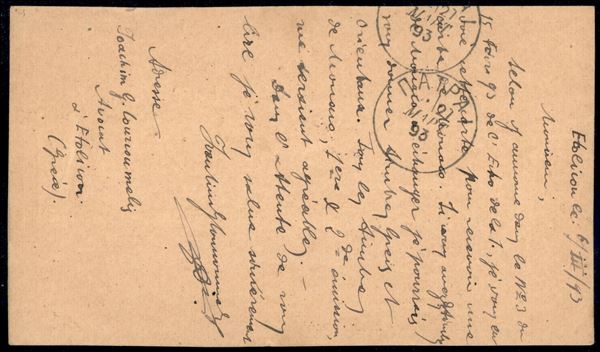 Montcenis a Macon C (11.4.93) - Cartolina postale da 10 lepta da Etolicon a Nizza del 6.3.93 - annullata in transito